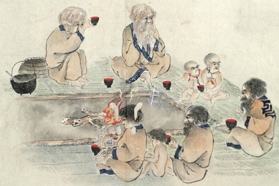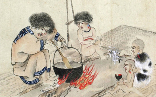 蝦夷土人惣て、食する盤を用いず只椀一つを用い、汁菜をも食せず。