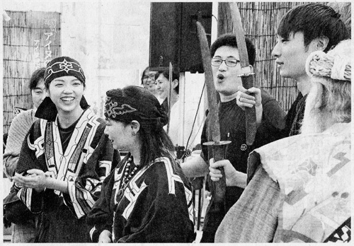 アイヌ民族と飛び入り参加の大学生らが一緒に踊る場面も