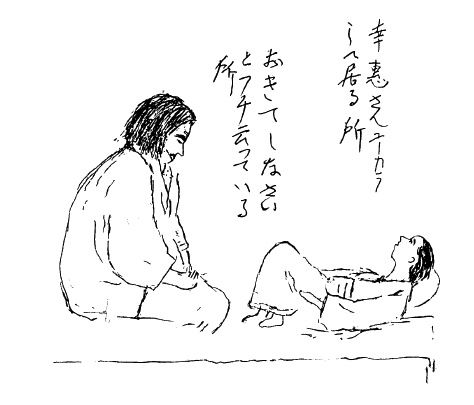 註 :「座布団をまくらにしてあおむけに寝てユーカラを始めました」