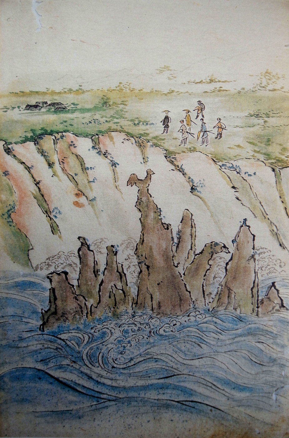 むかしは雌もならび居たりしかど、あら浪にうちとられたるなど人のかたるを聞つつ、 ‥‥‥