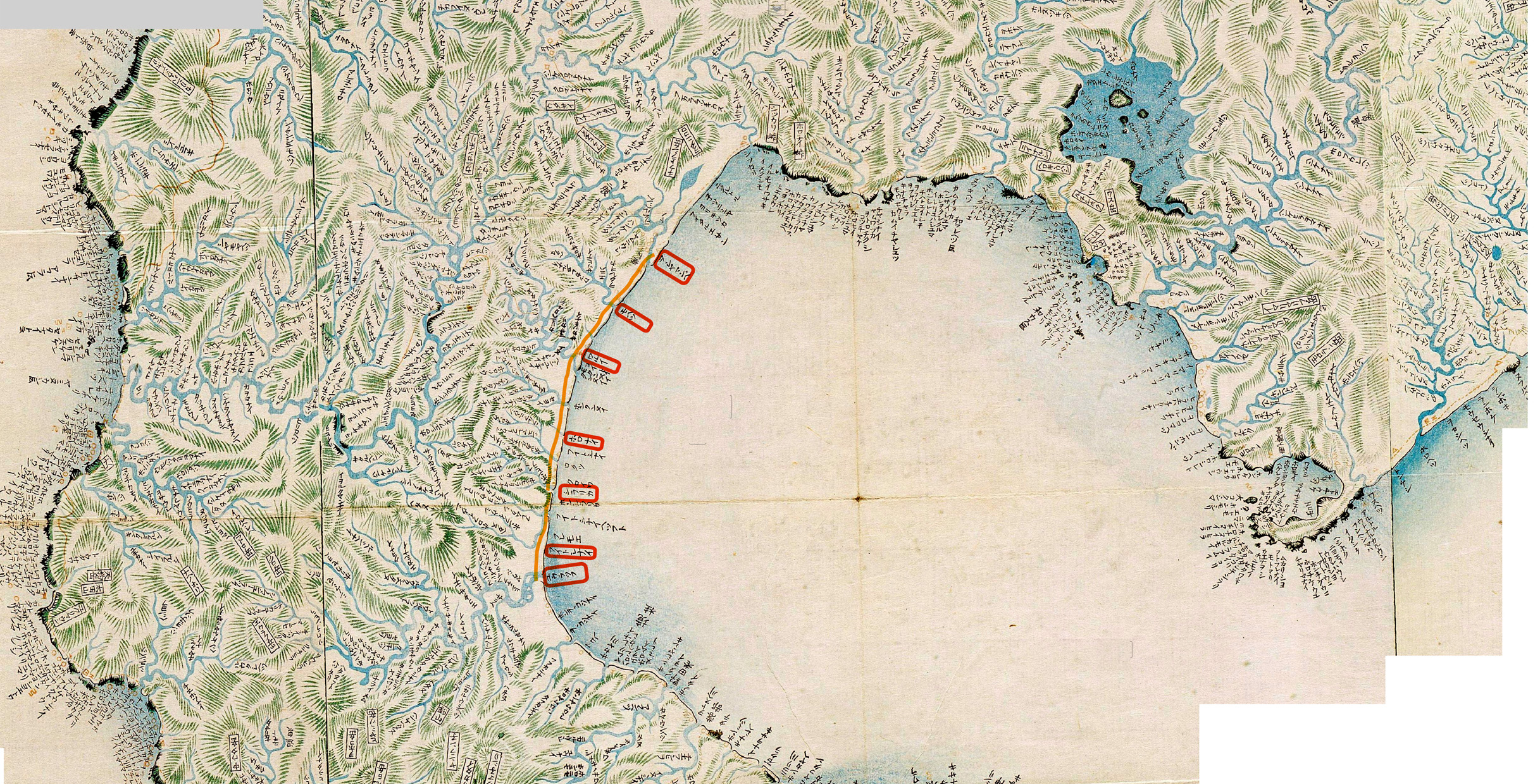 やをらふしつきぬとおもへば、夜半ばかり、かにばのまつをところどころにともしたて、メノコども七八人して、ふしたるひとりのメノコをおこしすへて左右の手をとり、ぬかをおさへ腰をかかへて、エビラ(小刀)やうのものをのんどへつき入て、口よりは血にてやあらん、泉の水をうつすが如くはきいだすをママにうけ、かくすることいくたびといふことをしらず。