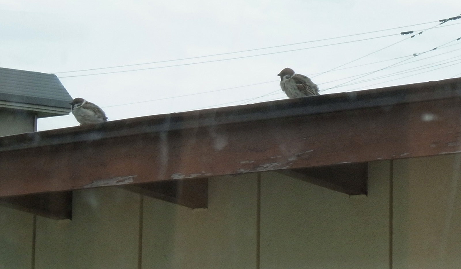 さてこの二羽,体がまるくて,スズメ01 で見慣れているスリムな体つきではない。