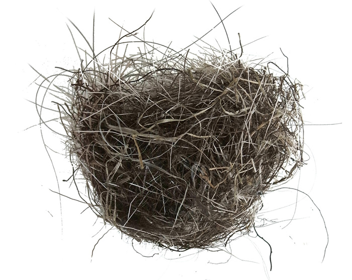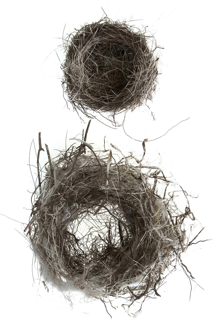 小さい方は,これの編み方から判ずるに,人が籠をつくるみたいに色んな向きにひっくり返して編んでいるのでは?
