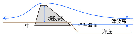 堤防と津波の関係は,高潮や川の増水とはまったく異なる。