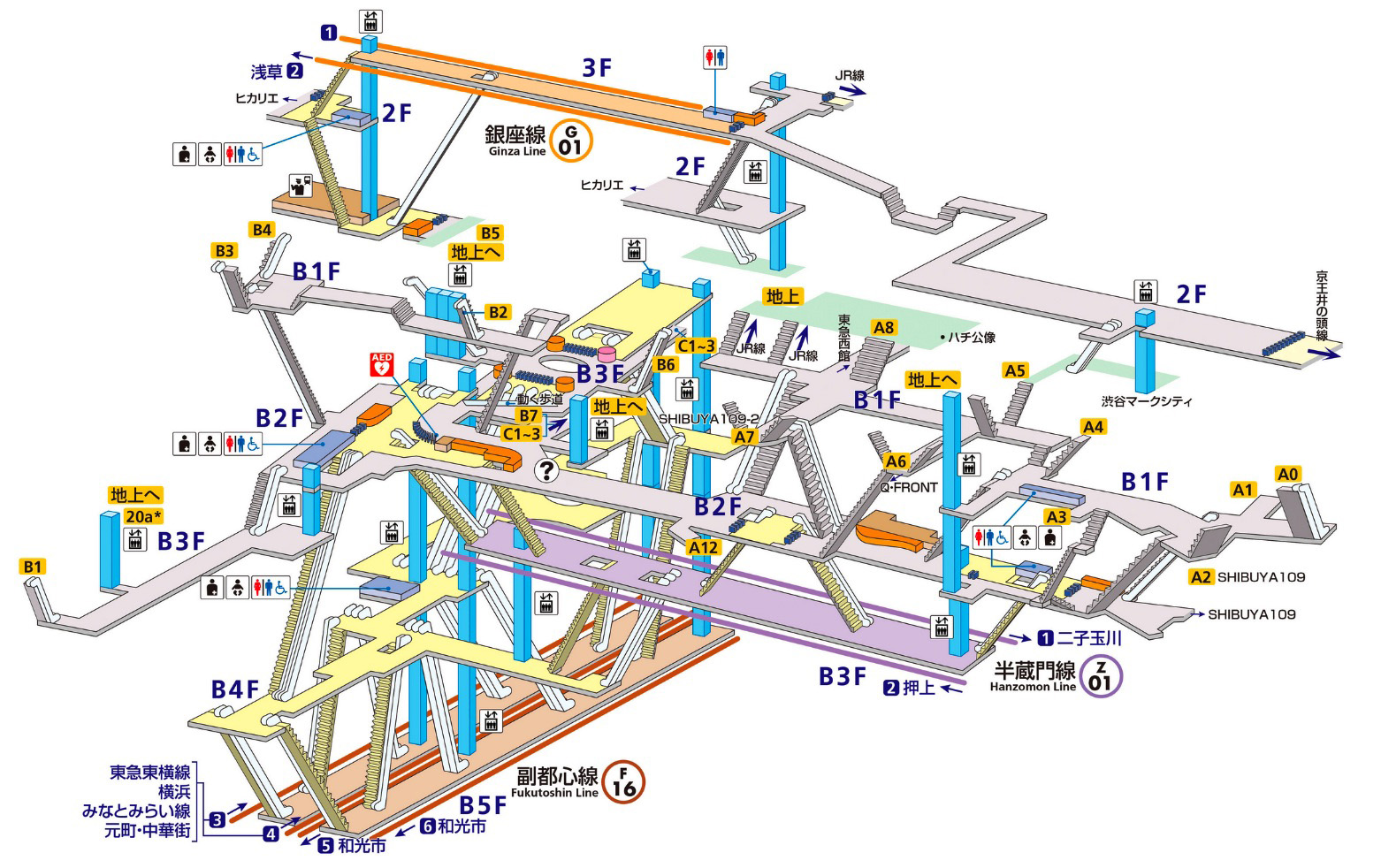 渋谷・新宿の地下鉄駅には,河原とつながっている地下鉄トンネルが低いところにある。