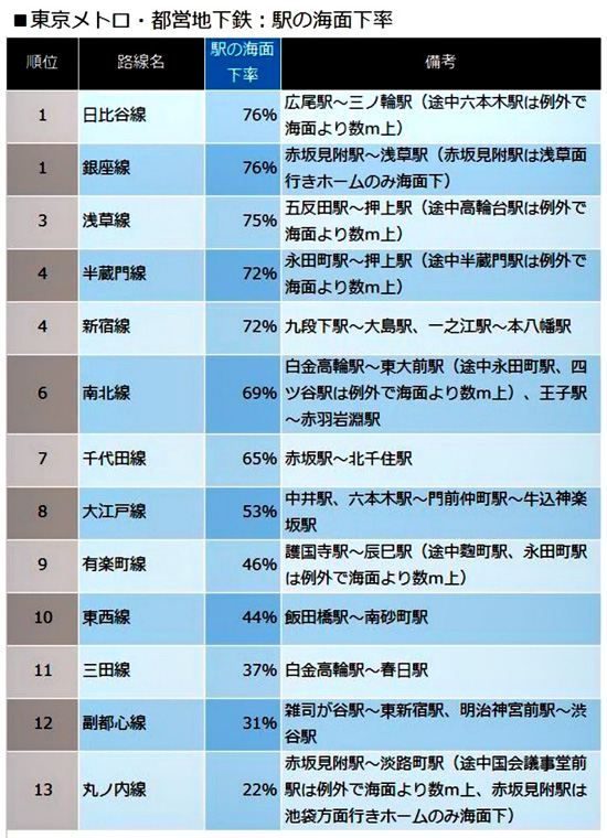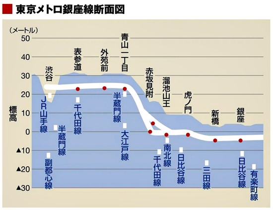 東洋経済「先入観と全く違う「東京の地下鉄」本当の深さ」, pp.2-4 から引用: