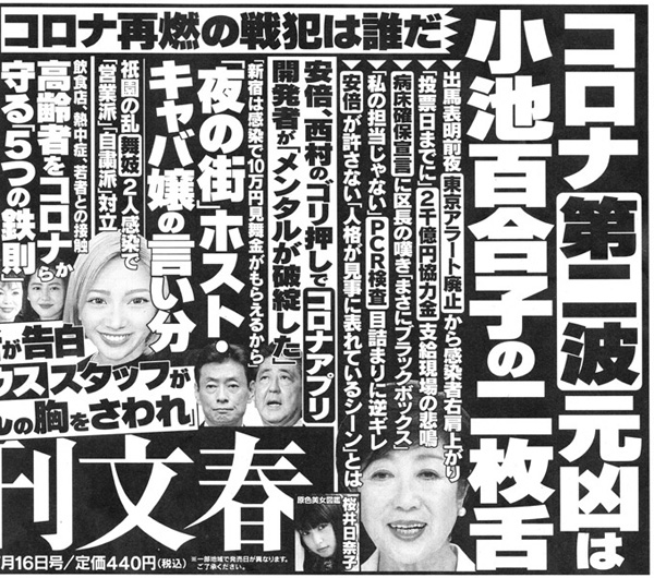 週刊誌だと, 『週刊文春』が「統制」, 『週刊新潮』が「どおってことない」である: