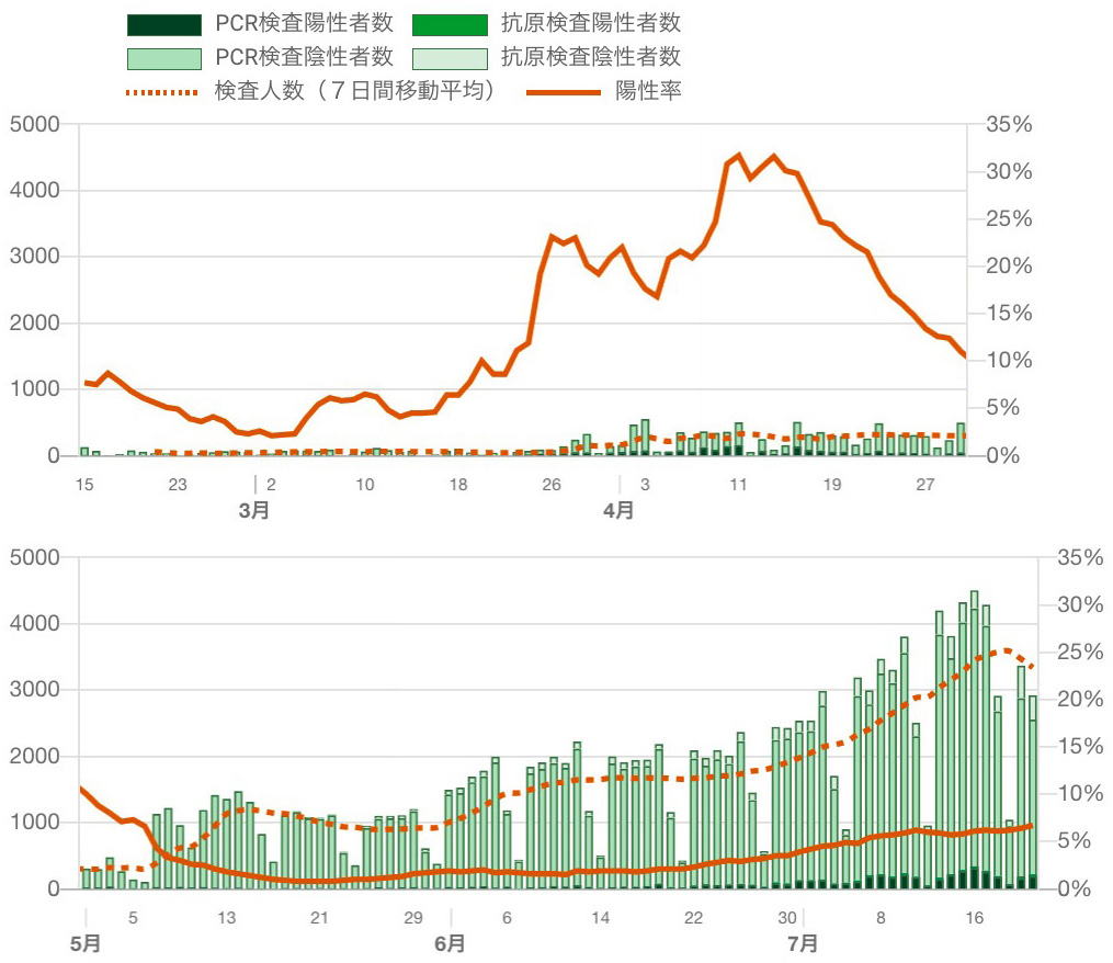 6月17日以降に行われた抗原検査については、陽性判明数、陰性判明数の両方を計上
