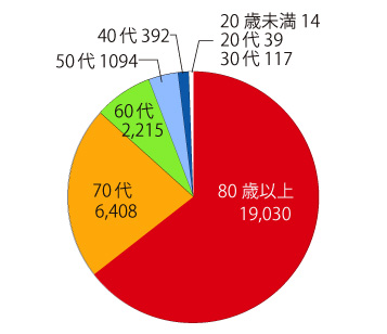 年齢群別死亡数 (累計) の比率を円グラフに表すと: