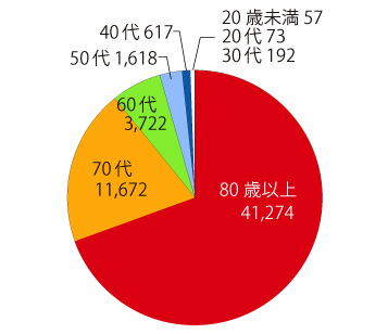 年齢群別死亡数 (累計) の比率を円グラフに表すと: