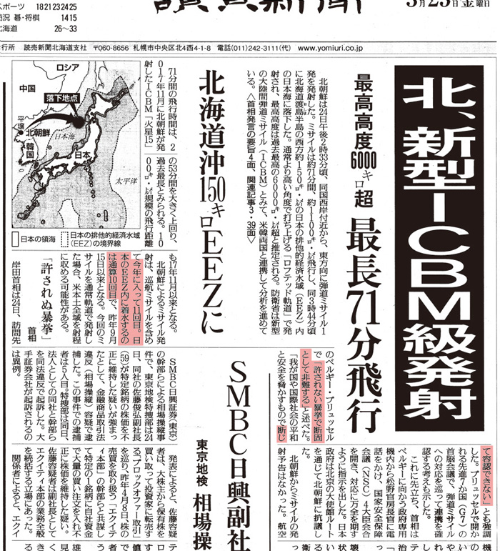 その逆で,核兵器を持ちたくなることである。 生物は自分の子孫を残すために,他と争う。 そして,最も争うことになるのは,同類の他者である。 繁殖要件が同じなので,争いが最も苛烈になるのである。 この圧力は,生物を「軍拡」の方向に進化させる。 強い武器を持たない者は,持つ者に勝てない。 勝てないので,できることはやられないようにすることである。 どうやって? 方法は,結局2つである。 即ち,<媚びる>と<虚勢を張る>。 北朝鮮ミサイル発射に対する「許されない暴挙で断固として非難する」「断じて容認できない」は,<虚勢を張る>である。 「許されない」「容認できない」ということばは,これのつぎに「よって○○を行使する」が続いて,意味をもつ。 一方,北朝鮮ミサイル発射に対する「許されない暴挙で断固として非難する」「断じて容認できない」は,これに続く「よって○○を行使する」が無い。 ゆえに,<虚勢を張る>なのである。 この状況は,何とかならないものか? 何ともならない。 不合理が進行しているわけではないからである。 合理が進行しているのである。 是非も無し。 |