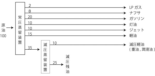 ガソリンだけを減らすというわけにはいかない。」 「連産品」は,つぎのモデルで考えられている (数値は概測):