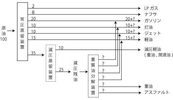 しかし実際は,重質油分解技術というのがあって,連産品の得率をつぎのように変えることができる ( Wikipedia「クラッキング」):