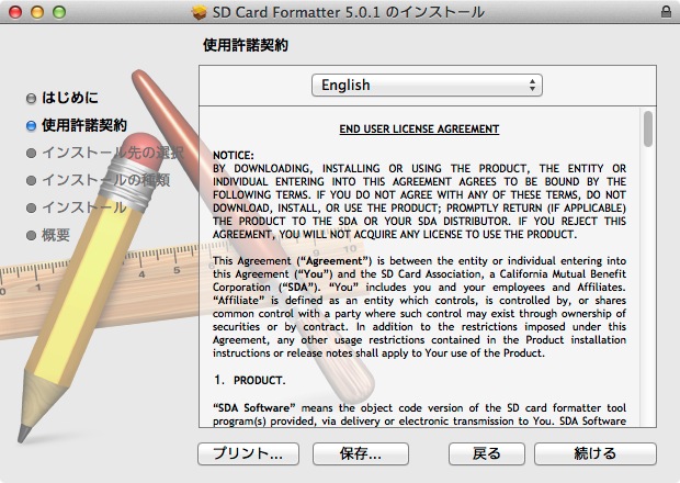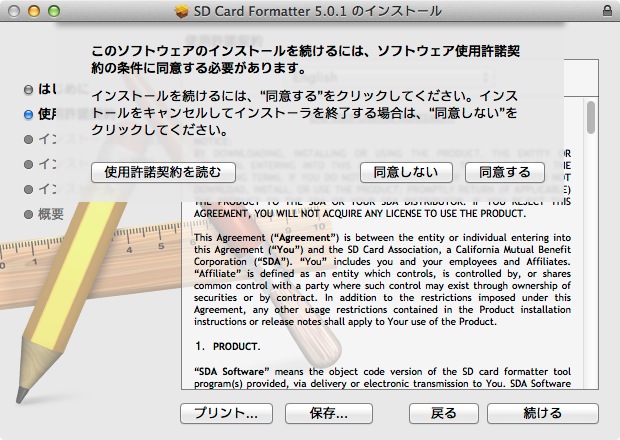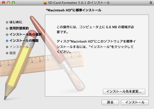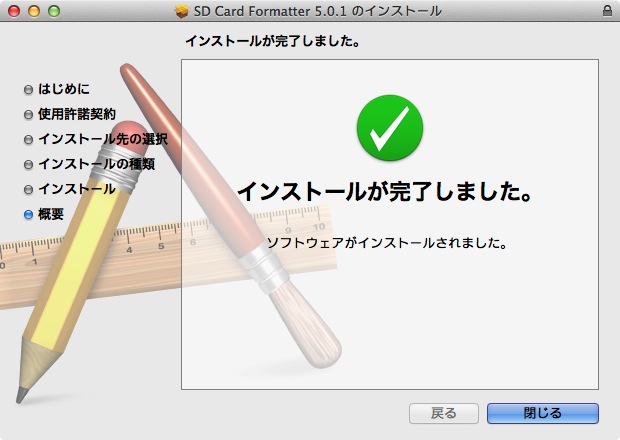 インストーラー Install SD Card Formatter 5.0.1.mpkg がダウンロードされる