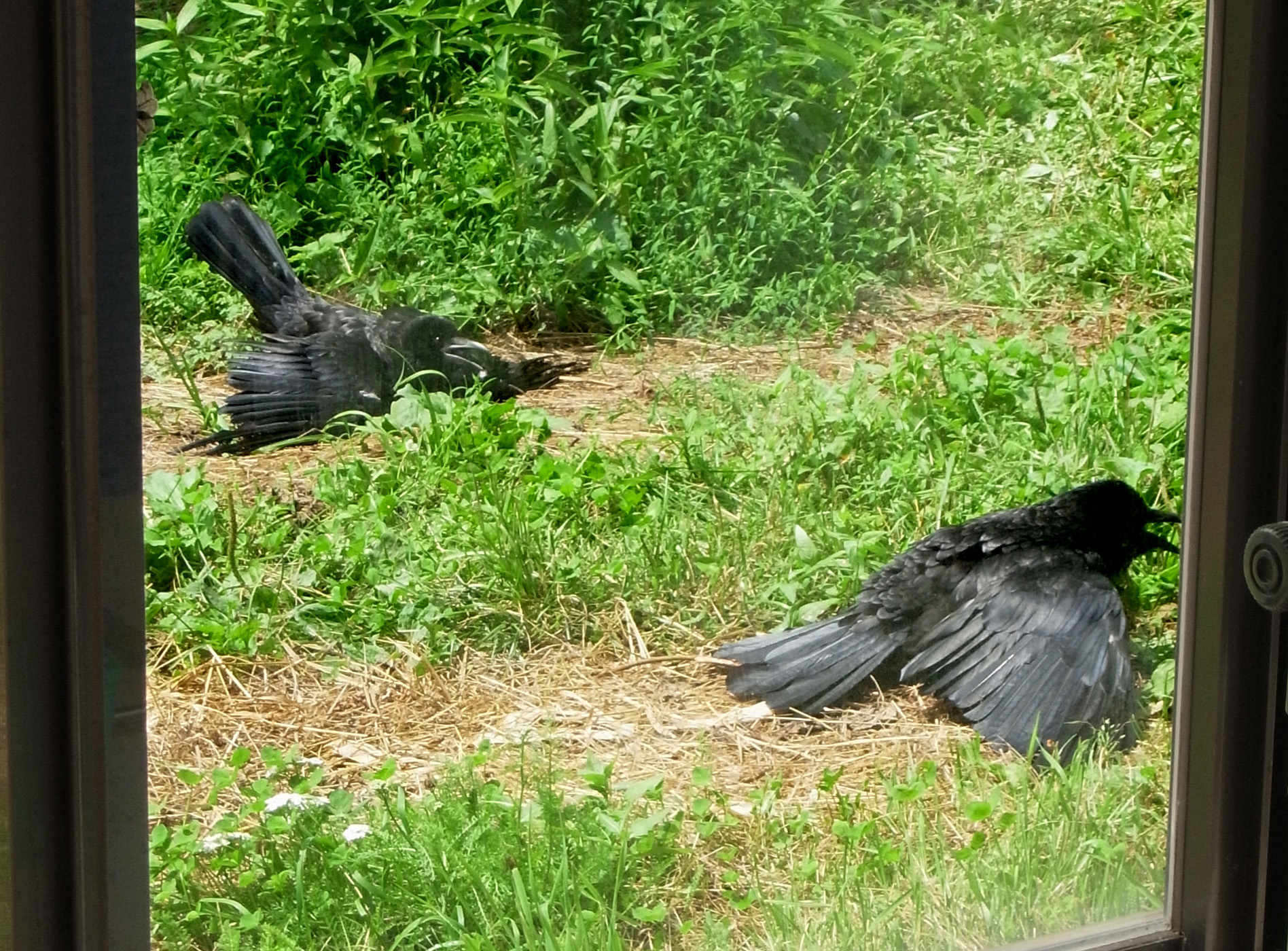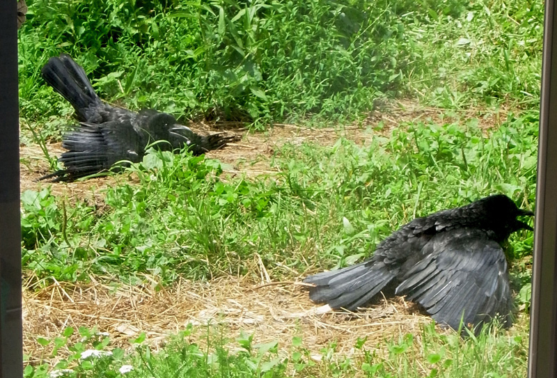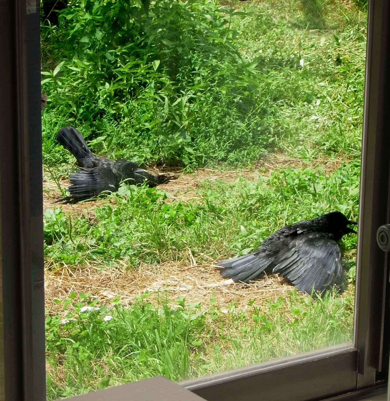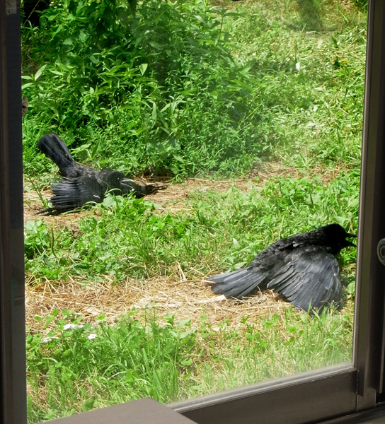 ♂が日光浴しているところに,後から♀が来て日光浴に加わる