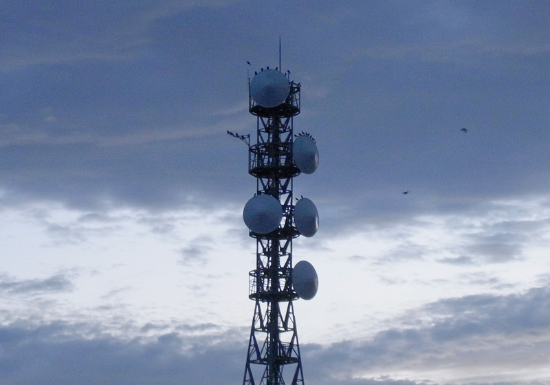 通信塔の上が,カラスの就塒前集合の場所になっている