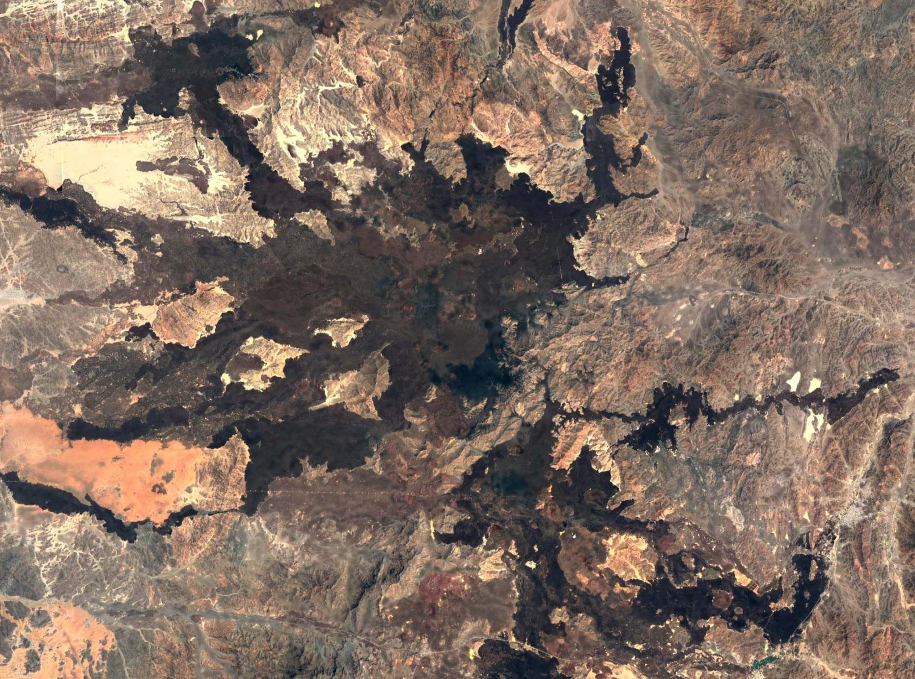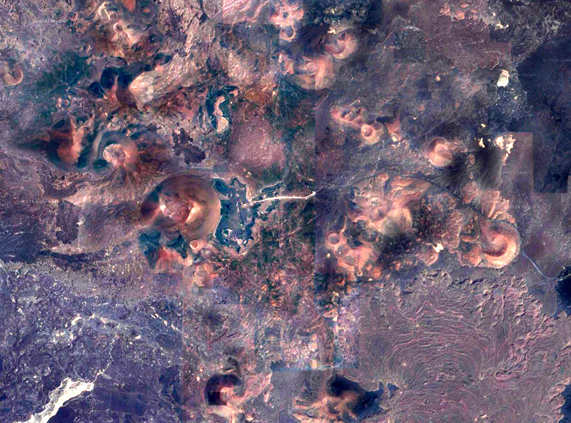 玄武岩溶岩原の中の火口群