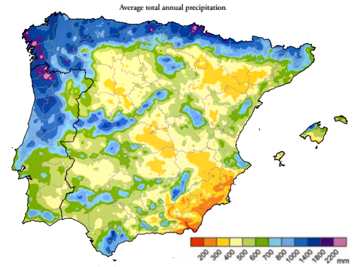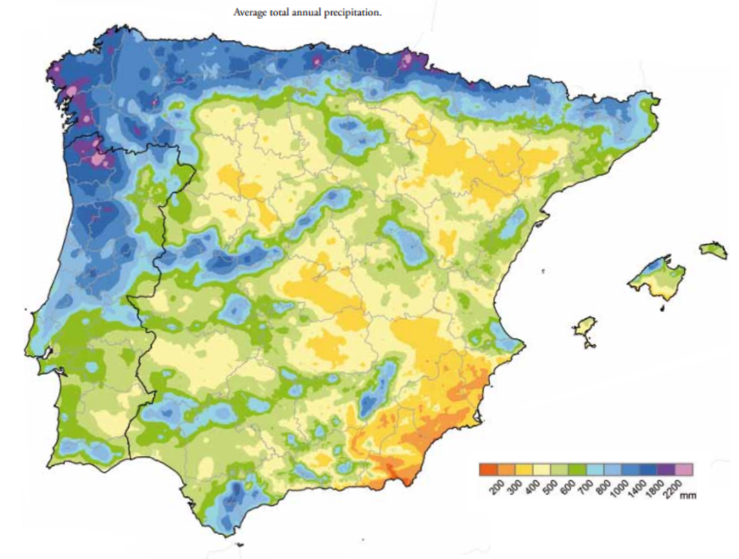 Jreddit : Average total annual precipitation in Iberia [1187x991]
