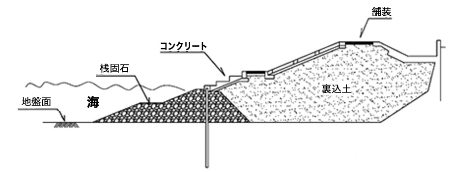 東京都港湾局「緩傾斜式防潮堤の写真・図面」