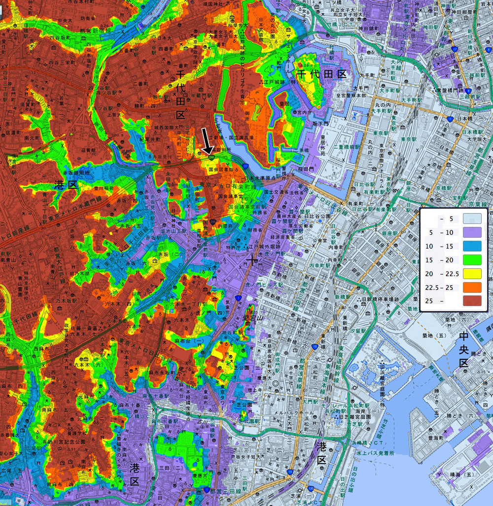 ちなみに,津波が国立国会図書館まで上るときは,堀も溢れることになる。