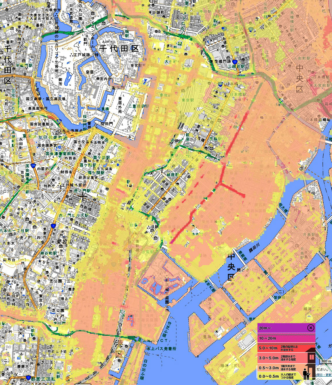国土地理院「重ねるハザードマップ」(洪水浸水想定区域) から引用