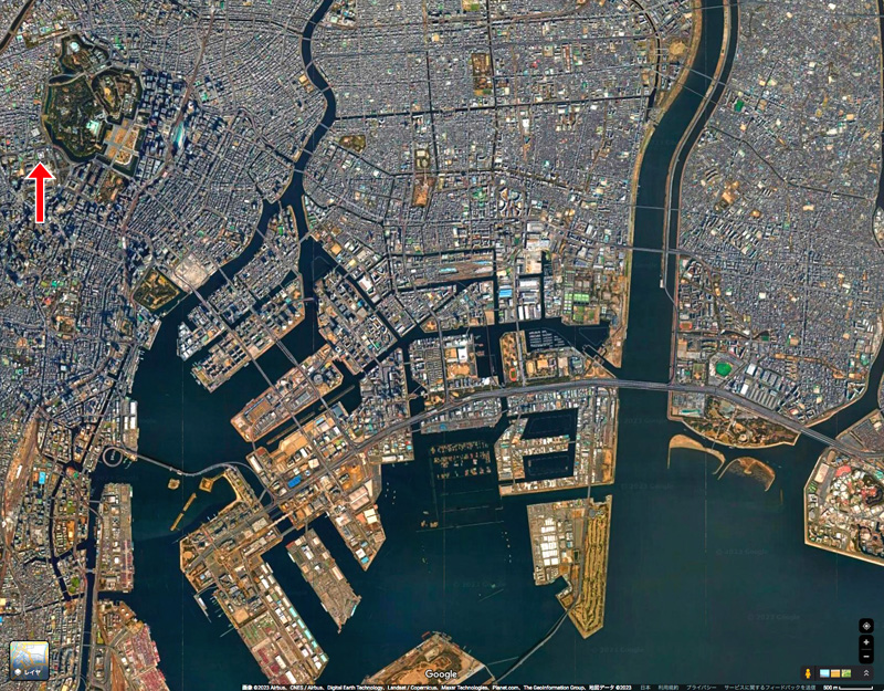 国立国会図書館の最寄りの防潮堤は竹芝埠頭で,直線距離で 3.1 km。