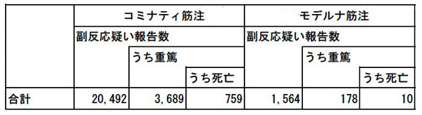 厚労省「新型コロナワクチンの副反応疑い報告について」