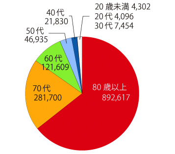 「年間死亡数 1,381,098 (138万人)」の年齢群別年間死亡数