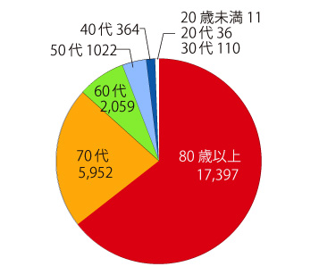 年齢群別死亡数 (累計) の比率を円グラフに表すと: