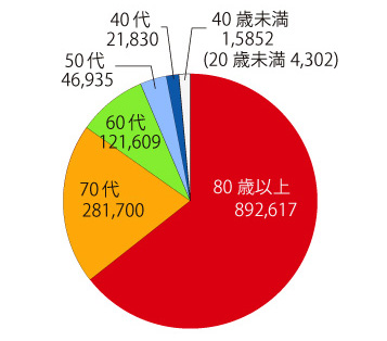そして, 「年間死亡数 1,381,098 (138万人)」の年齢群別数値は: