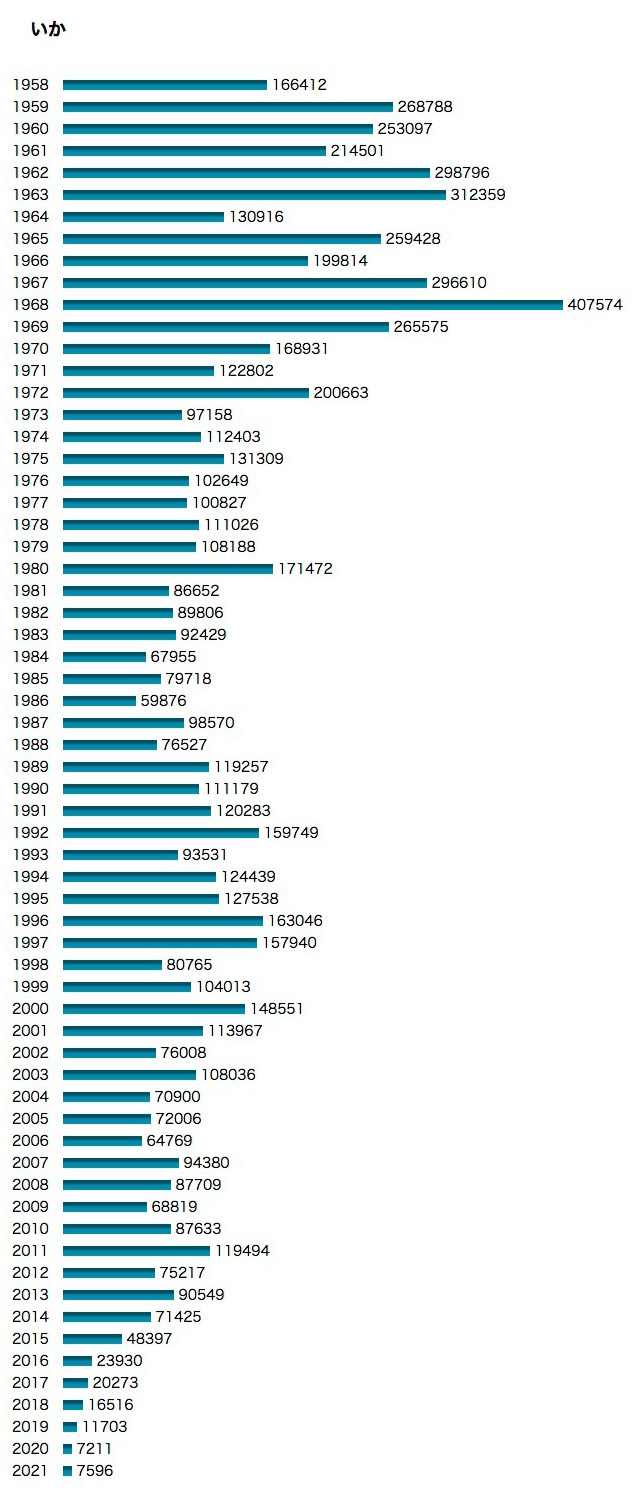 『2021年 北海道水産現勢』「累年」