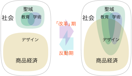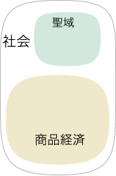 商品経済と聖域は,近づいたり離れたりを繰り返す (振り子運動): ![]()