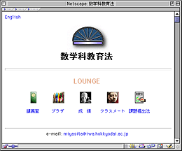- 1996年度後期から,数学科教育法,数学教育特講I,数学教育特講II (いずれも受講生数15〜20)を「WWWクラス」の形で授業しています。