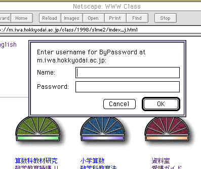 これをクリックすると,IDとパスワードの入力を求めるウィンドウが現れます。受講生はこの認証の手続きを経て「ラウンジ」に入ります。