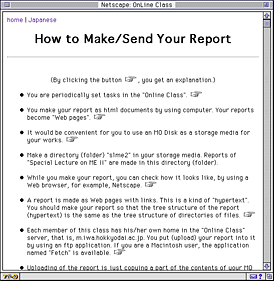 In the case of "WWW Class", students make their reports in the form of homepage, and send them into the server by means of ftp.