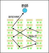 生徒の答えに対しては,他の生徒にリアクションさせます。そしてこのリアクションに対し,他の生徒にまたリアクションさせます。これを何回か繰り返します。