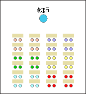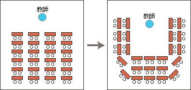 生徒がリラックスして議論できるような座席の配置を工夫しましょう。