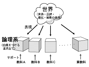 • これまで生き延びてきた役に立つフィクション(「論理系」)の伝授は,「教科教育」の意義の一つです。そこでは,フィクション(「論理系」)が「教科」(地理,生物,歴史,言語,数学,等々)に区分されます。