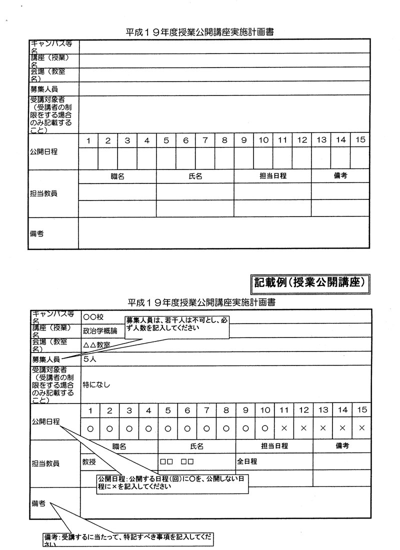大学の分校のなかには公開講座・授業公開を義務化しているところがあり,またそうでないところもあるので, センターからの公開講座・授業公開実施指示は「協力依頼」の形になる。 ただし,つぎのような文言を用いて「義務」の雰囲気形成を行う: