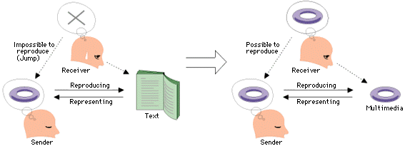 Traditional teaching/learning materials are texts. In the origin/base of a text there are pictures. But the text is not such a kind of thing that re-presents the pictures.