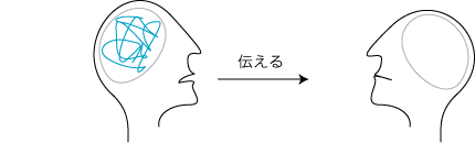 すなわち,自分のアタマの中にあるものが,「伝える」という行為によって,相手のアタマの中にコピーされるというイメージである: