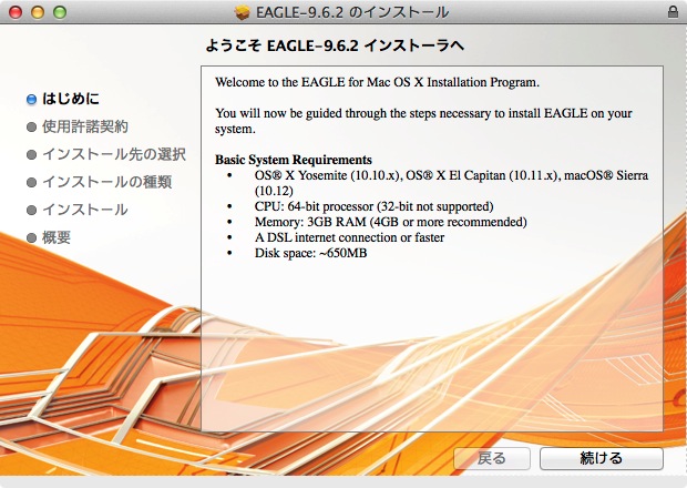 eagle-7.1.0.pkg を起動