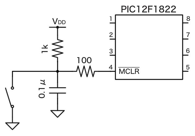MCLRE = OFF に設定すると,入出力用ピン RA3 として使用できる。