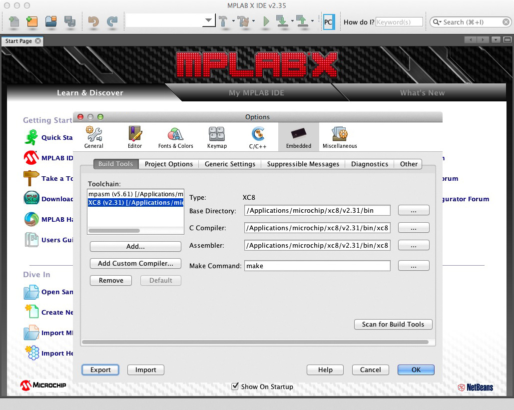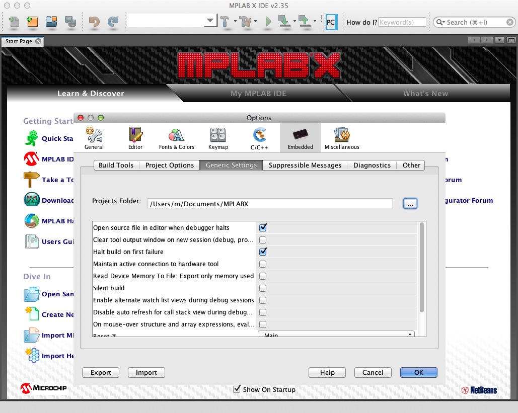 Projects folder を /Users/m/Documents/MPLABX に設定
