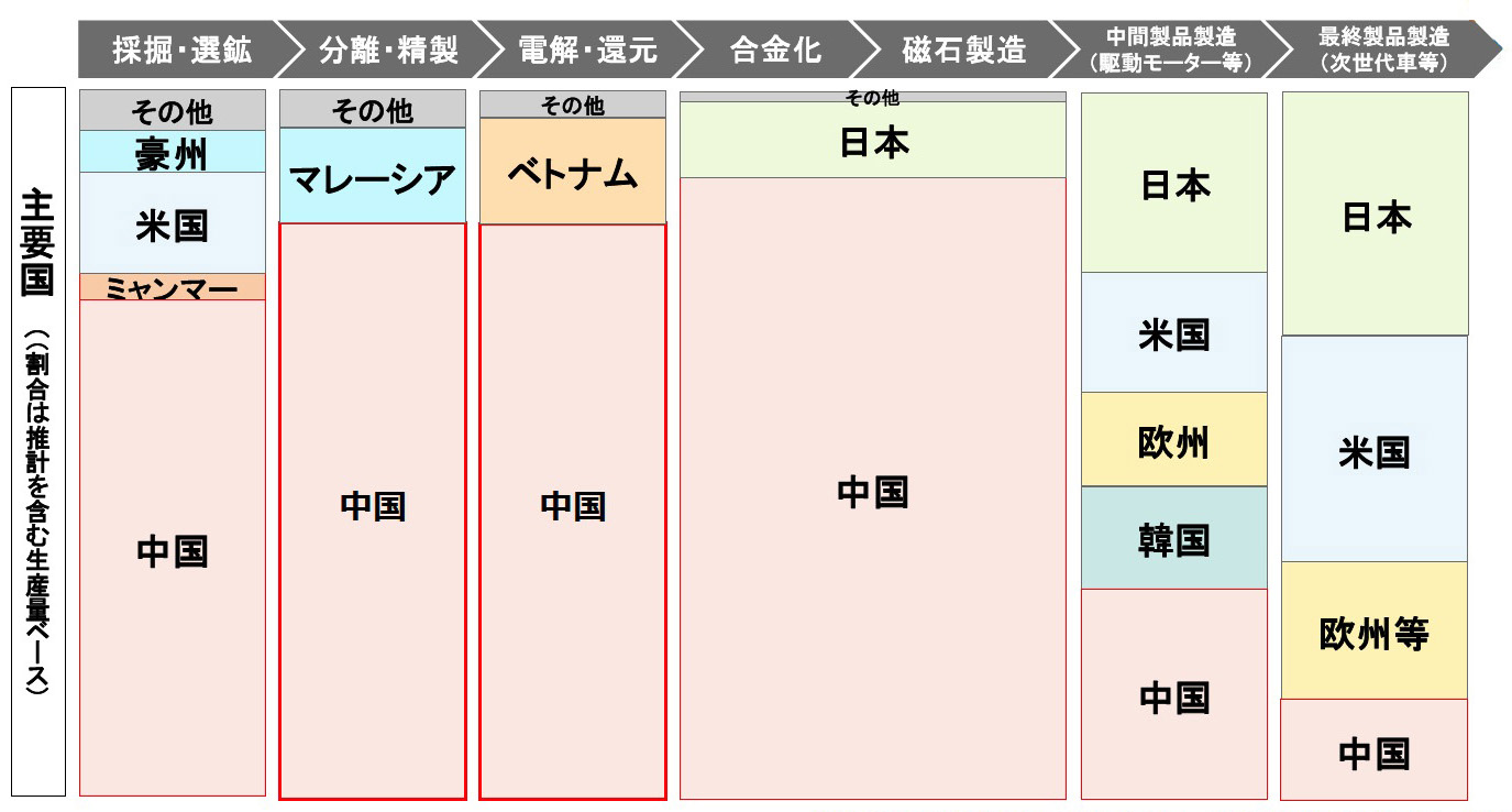 | 註: | 「採掘・選鉱」にある豪州・米国が自国民からの「自然破壊・環境汚染」の批判を免れているのは,人の居住地から離れたサバクで採掘しているため。 |