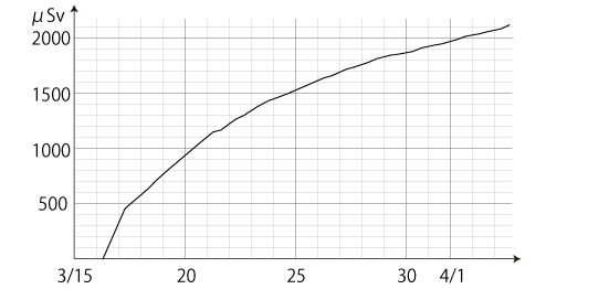 この間の被曝量 (μSv) | 測定開始時からの被曝量 (μSv) | 測定開始時からの経過時間 |