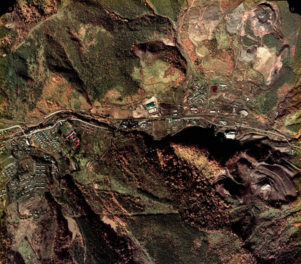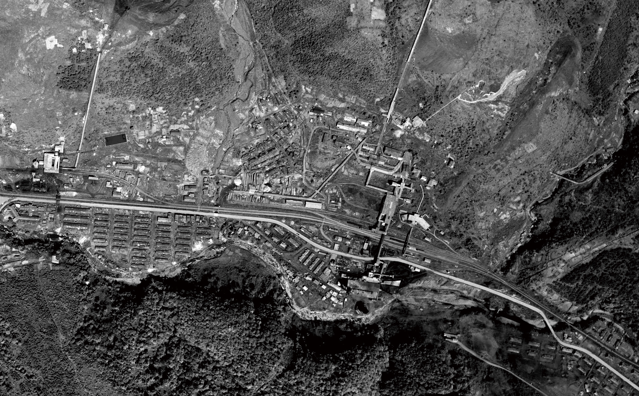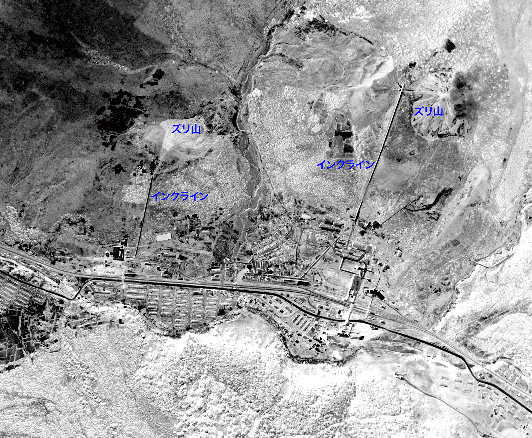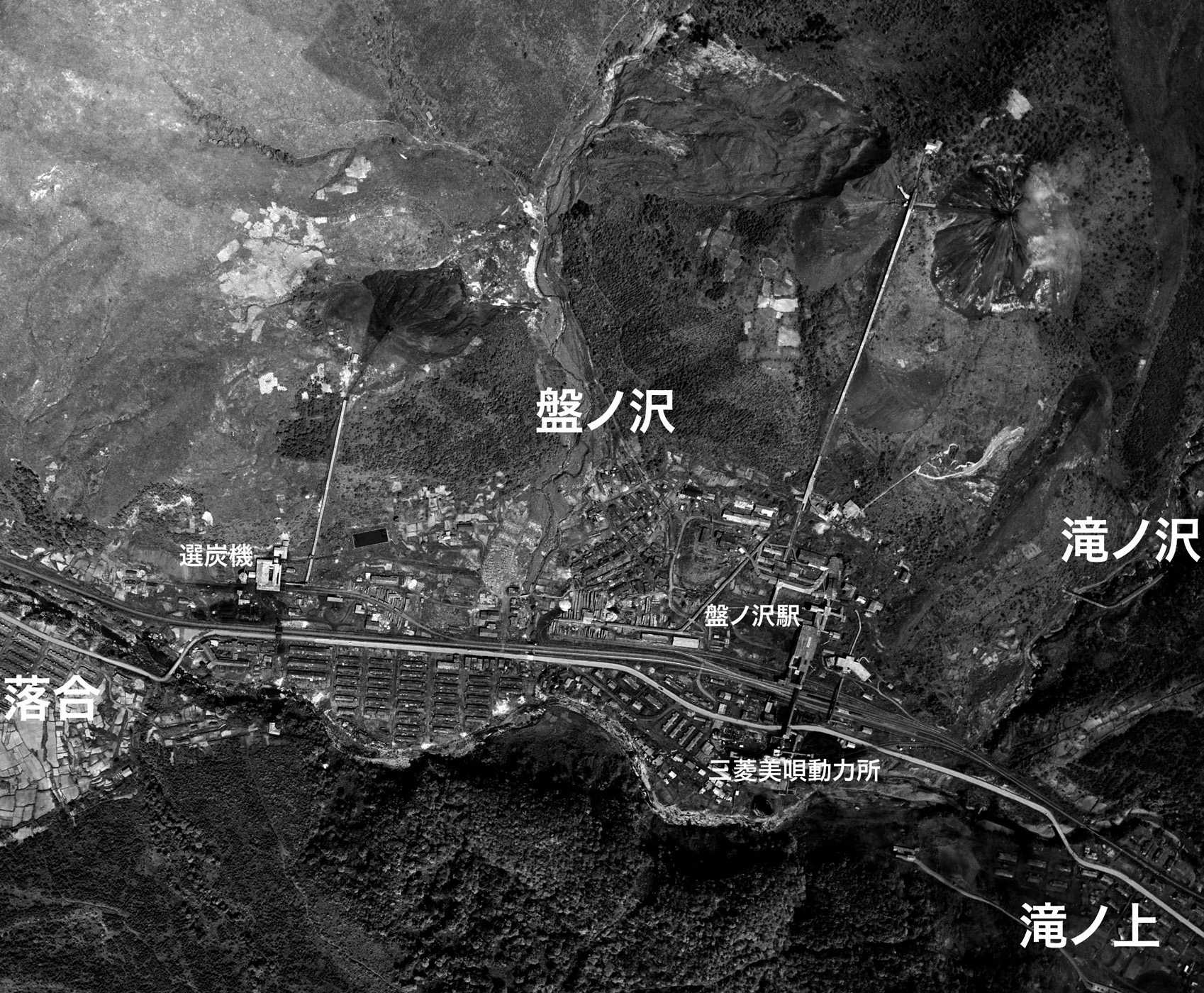 盤の沢駅を中心に発電所・選炭場など炭鉱関連施設が分布し,病院・映画館・温泉旅館などが軒を連ねる。