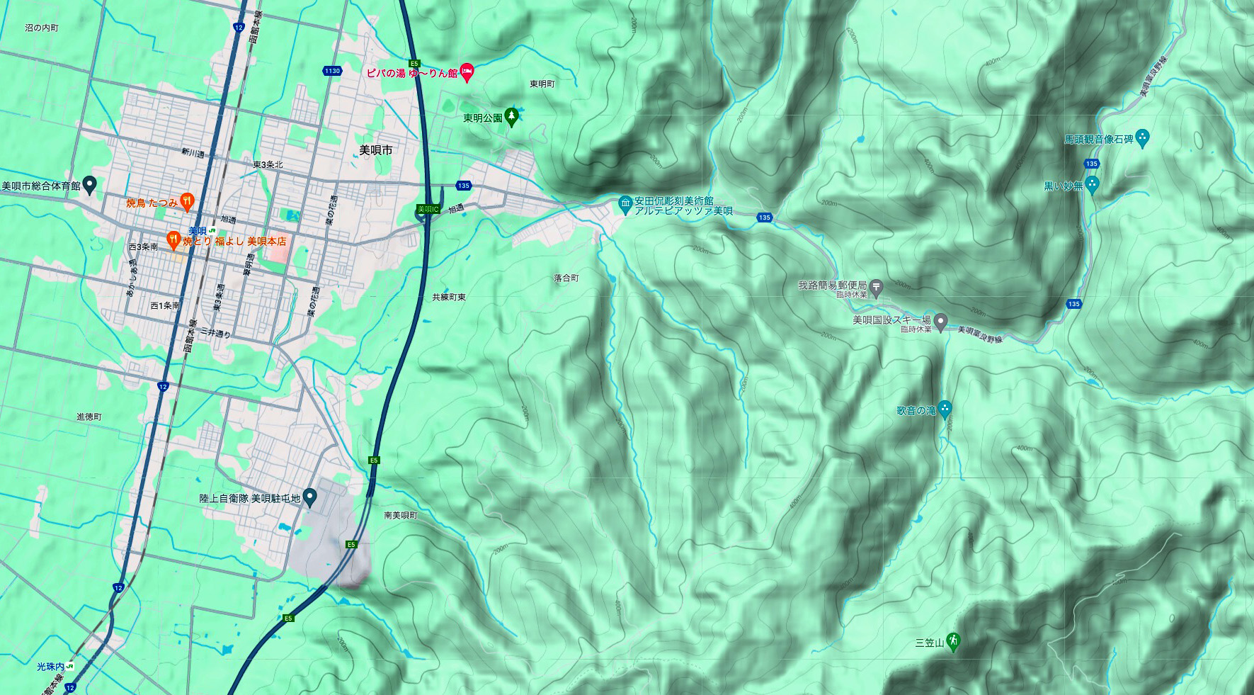 字美唄・滝の沢・滝の沢原野などを含む地域。