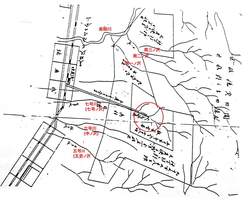 七号沢上流山麓から丘陵地一帯に三鉱区二五O万坪の試掘権を設定し、沢沿いに坑口を開き、そこから上川道路 (現国道一二号線、美唄自動車学校付近) まで一四八O間の馬車木道を敷設した。