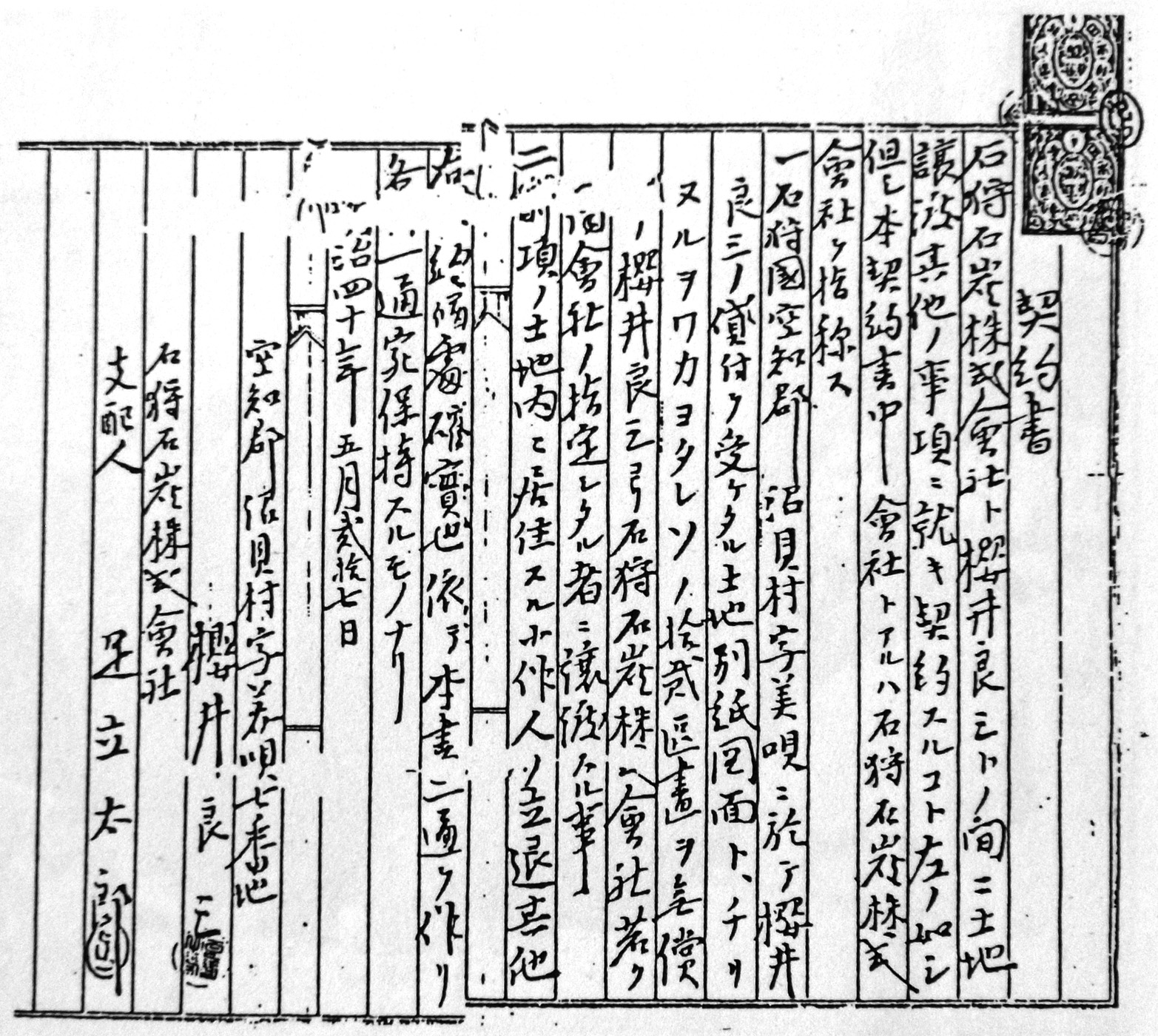 桜井良三と飯田延太郎の契約書